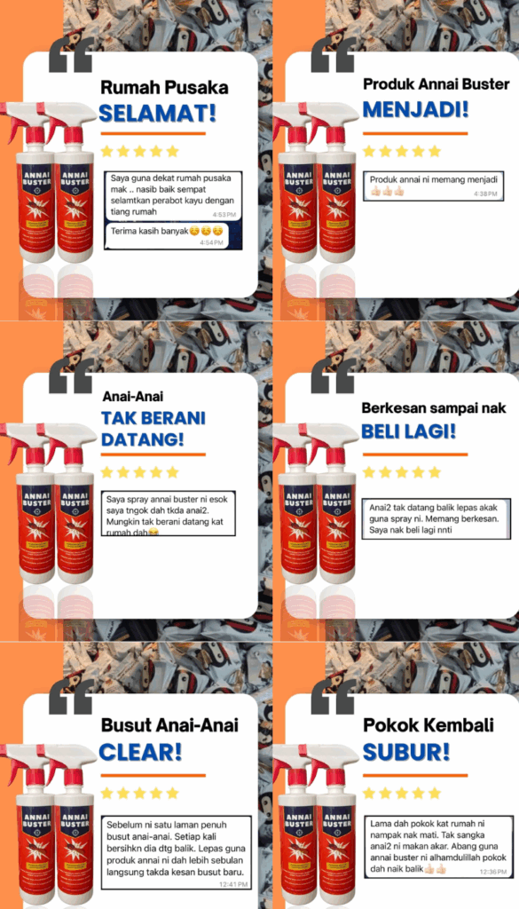 Sekarang, ramai pemilik rumah dan kebun dah mula rasa tak senang duduk… sebab makin ramai yang dah cuba Annai Buster dan nampak hasilnya. Termasuk anda yang sedang baca ni. Tapi mungkin… masih ragu-ragu. Takut beli, tapi tak berkesan. Dah banyak kali kecewa dengan racun anai-anai lain. Betul tak?