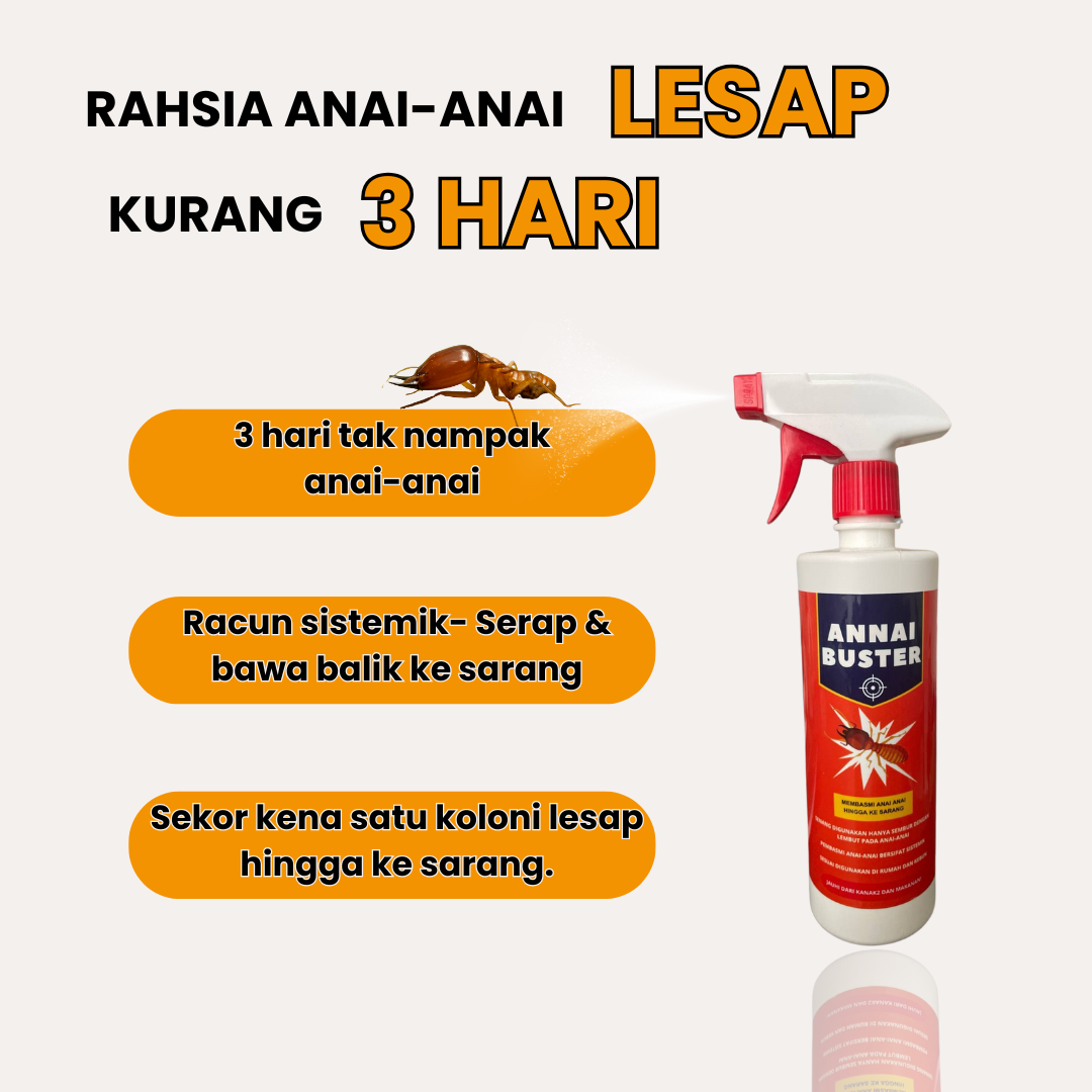 Jangan Risau Anda Perlukan Annai Buster dengan Segera! Racun yang matikan anai-anai hingga ke sarang!